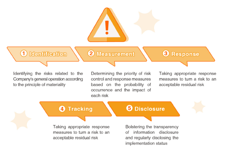 The Company’s Risk Management Committee is chaired by the Chairman, with the CFO serving as the convener and the senior executives of all units as the members. The committee meets at least twice a year, and the directors, managers of relevant departments, internal auditors, accounting or legal advisors, etc. may be invited to attend the meetings if necessary. The committee is responsible for formulating the Company’s risk management policies and framework as well as the implementation of strategies for relevant risk appetite, and reports to the Board of Directors annually to supervise the operation and overall implementation of the risk management mechanism. Members of the Board of Directors and the Risk Management Committee also receive certain hours of continuing education every year to enhance the ability to oversee and implement corporate risk management practices.