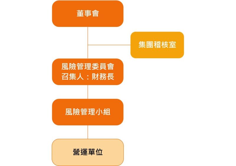 本公司風險管理委員會由董事長擔任主席,集團財務長擔任召集人,各單位最高主管擔任委員,每年至少召開兩次會議,必要時得邀請董事、相關部門經理人員、內部稽核人員、會計與法律顧問等人員列席,負責訂定本公司風險管理政策、架構及相關風險胃納之策略執行,每年向董事會報告以監督風險管理機制運作及整體落實情形。董事會及風險管理委員會成員亦每年進行特定時數的進修,以提升企業風險管理實務的監督與落實能力。